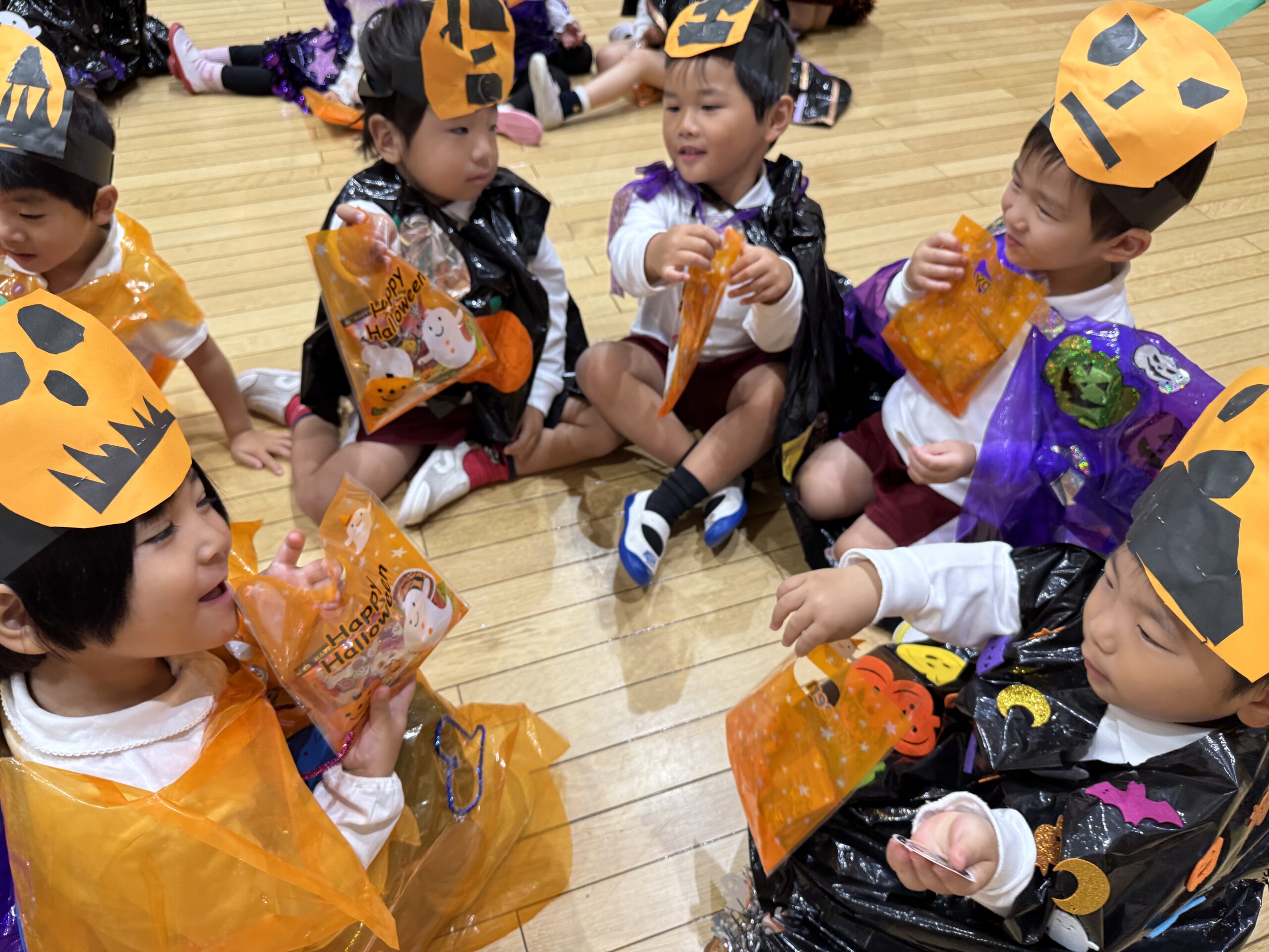 今日は幼稚園のホールで、ハロウィンパーティーをしたよ(^^)/