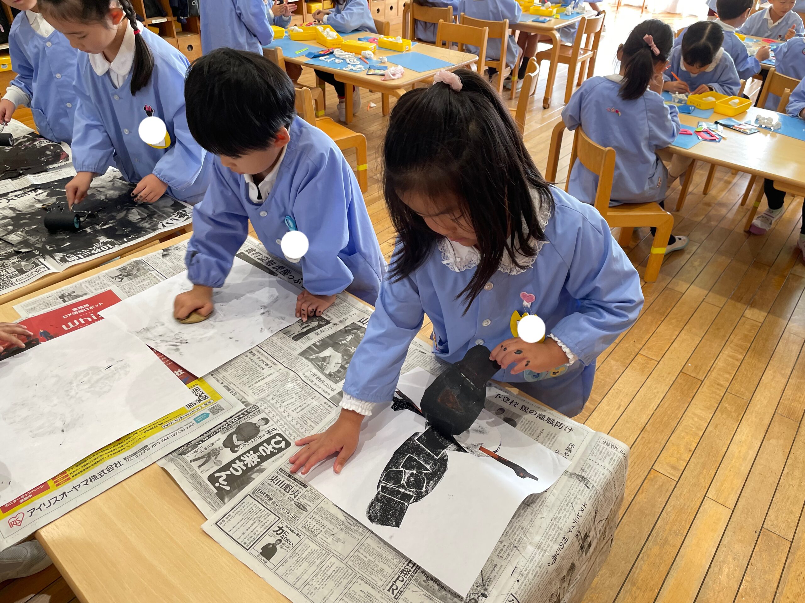 作った画用紙には、黒いインクをつけたローラーでぬりぬり(*^^)v
