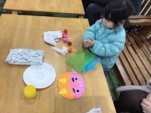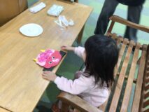 その月に由来するものを親子で作ったりするコーナーも用意してますし、エントランスではマットの上で子どもたちが自由におもちゃで遊ぶ傍らで、保護者が語らいあったり…そして、なんと言っても、広い園庭で思いきり遊ぶことができるのが、何よりの魅力だと思います。