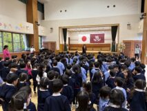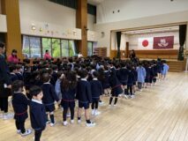 ホールで集まった際は、少し緊張した面持ちの子もいたり、他クラスに元いたクラスの友だちを見つけ、笑顔で手を振る姿もみられました。