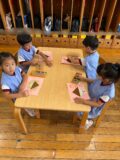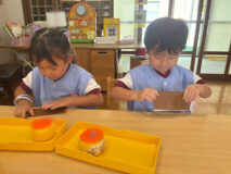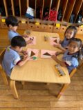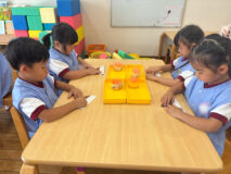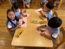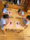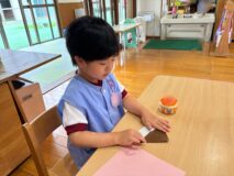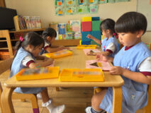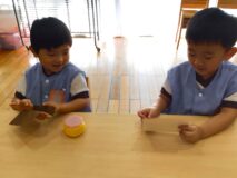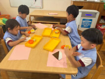 実りの秋の季節!「くり」を折り紙で折ったよ!「この前、給食で出た栗ご飯の栗だね♡」ってみんな大喜びだったね。