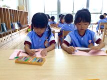 くりの周りにくだものを描いたり、自分を描いたんだ〜