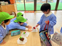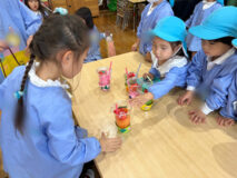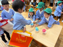 年少さんは食べ物やさんで、アイスクリーム・ケーキ・ジュース・かき氷を作ったよ!