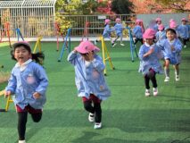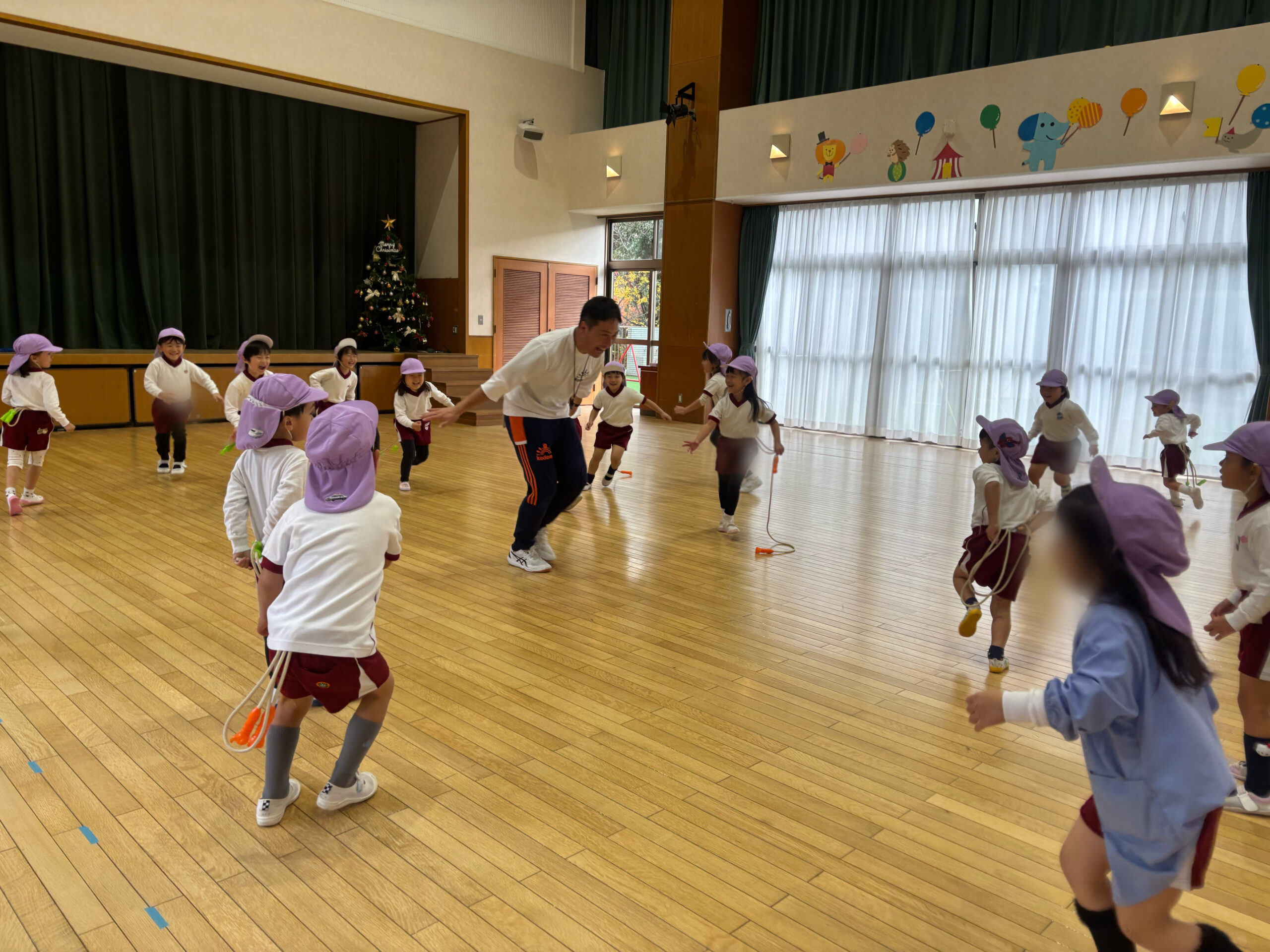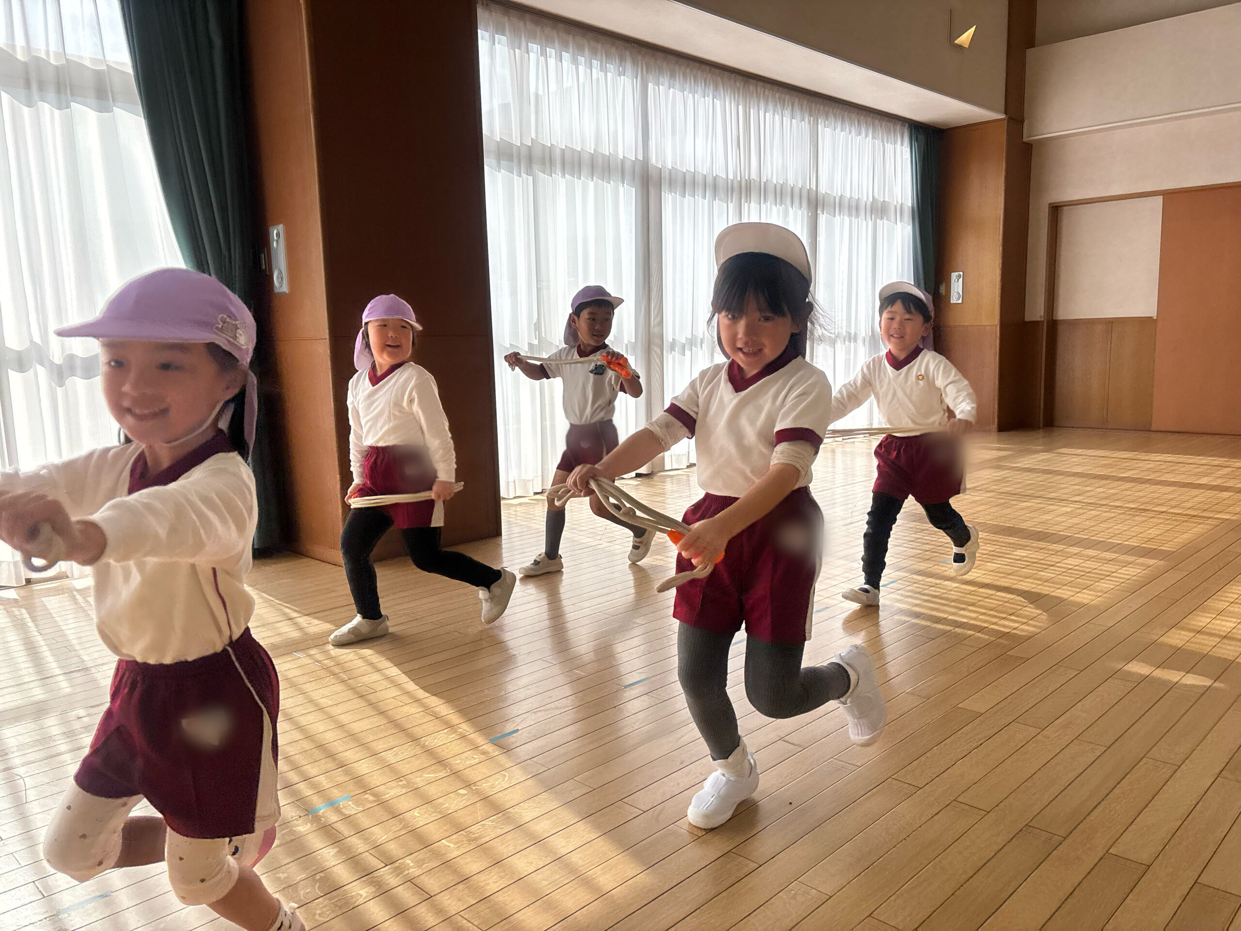 最後は縄を腰につけて先生としっぽ取り!先生のしっぽをみんなで追いかけたんだ^ ^