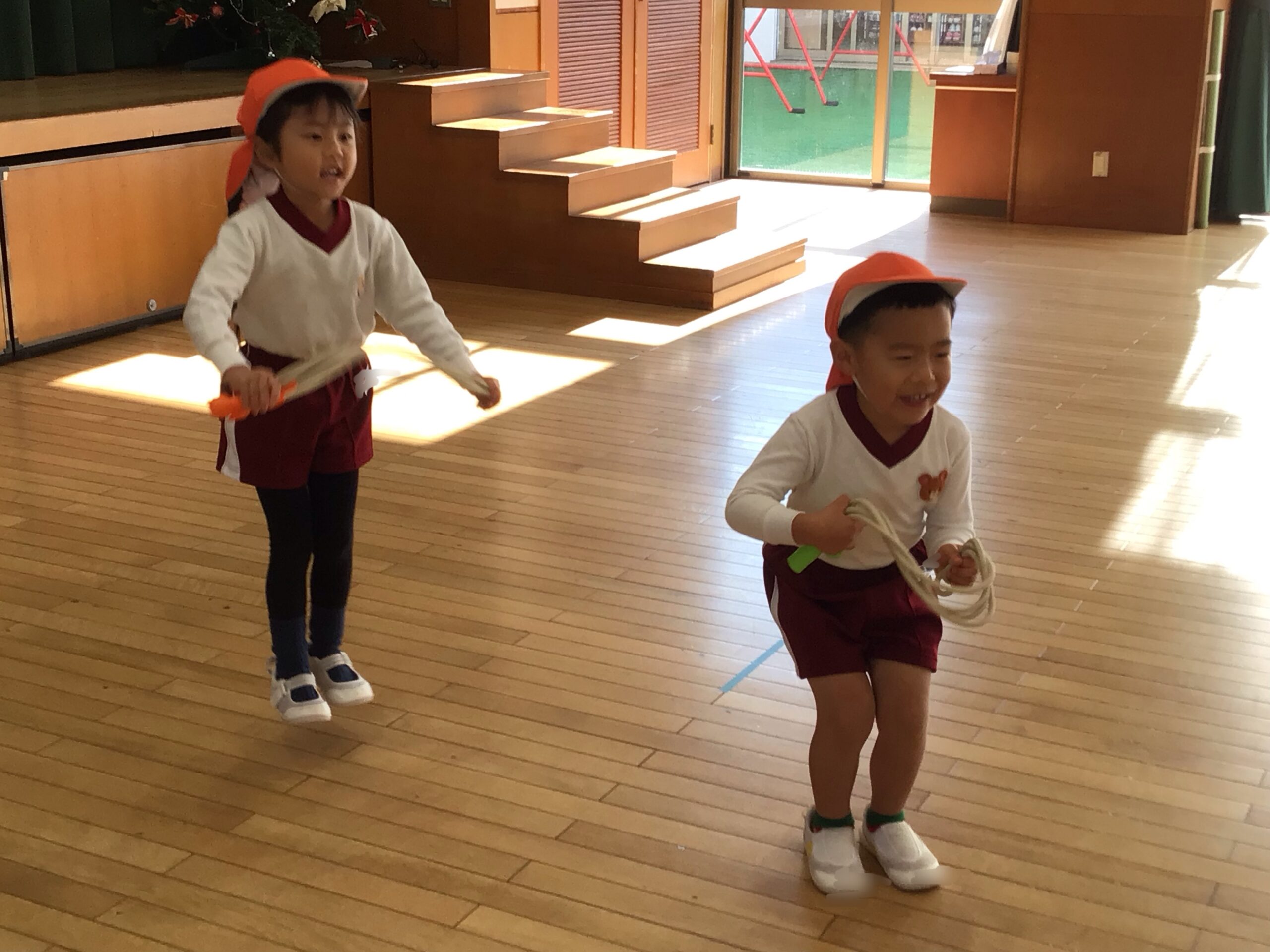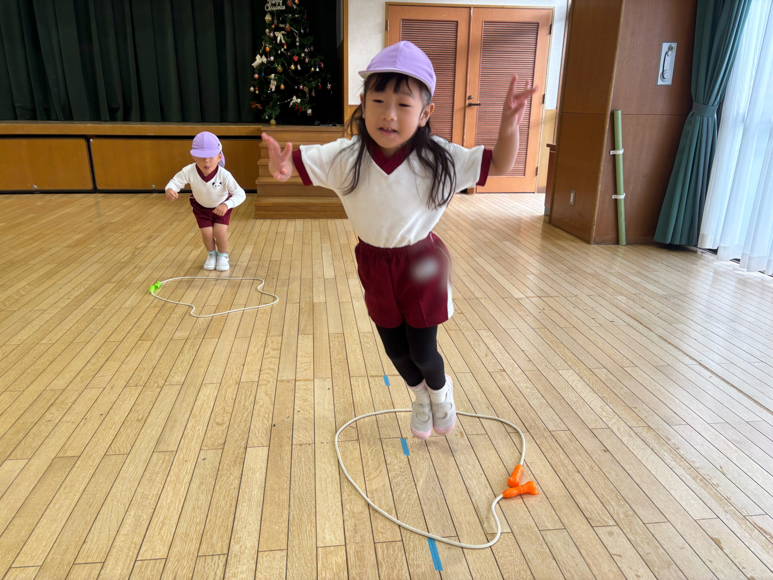 見てみて!こんなに回せるよ〜!縄跳びを持ったら…やった!跳べたよ♡
