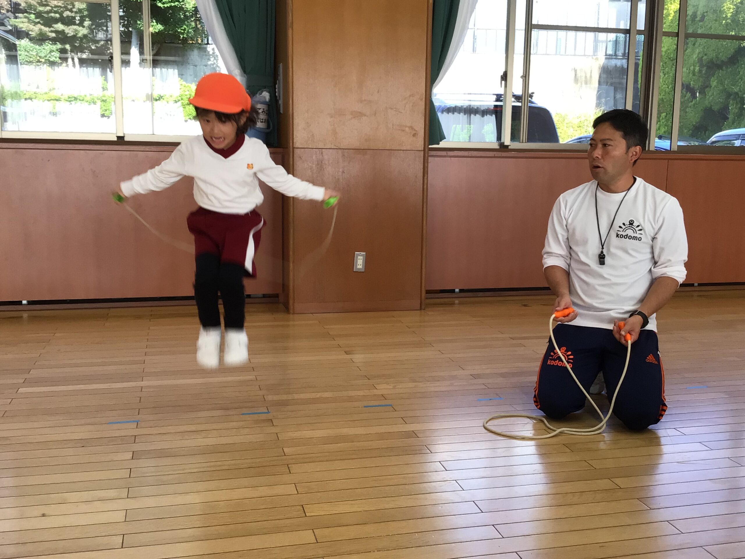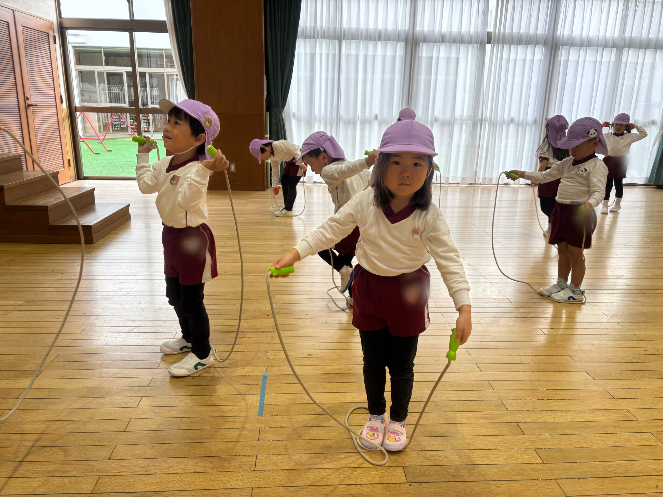 縄を持つ前に手のひらは上で、バンザイをして、大きく前に回すと上手に跳べるようになるんだって⭐︎