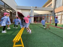平均台は「忍者跳び」といって、両手で平均台を支えて両足を揃えて左右にジャンプする技も教えてもらったよ!