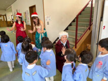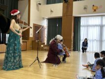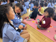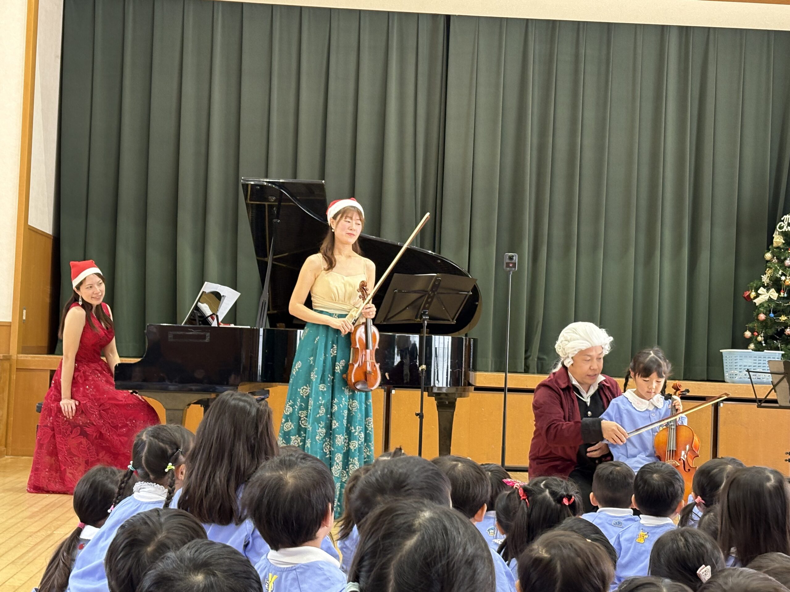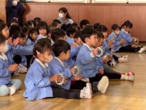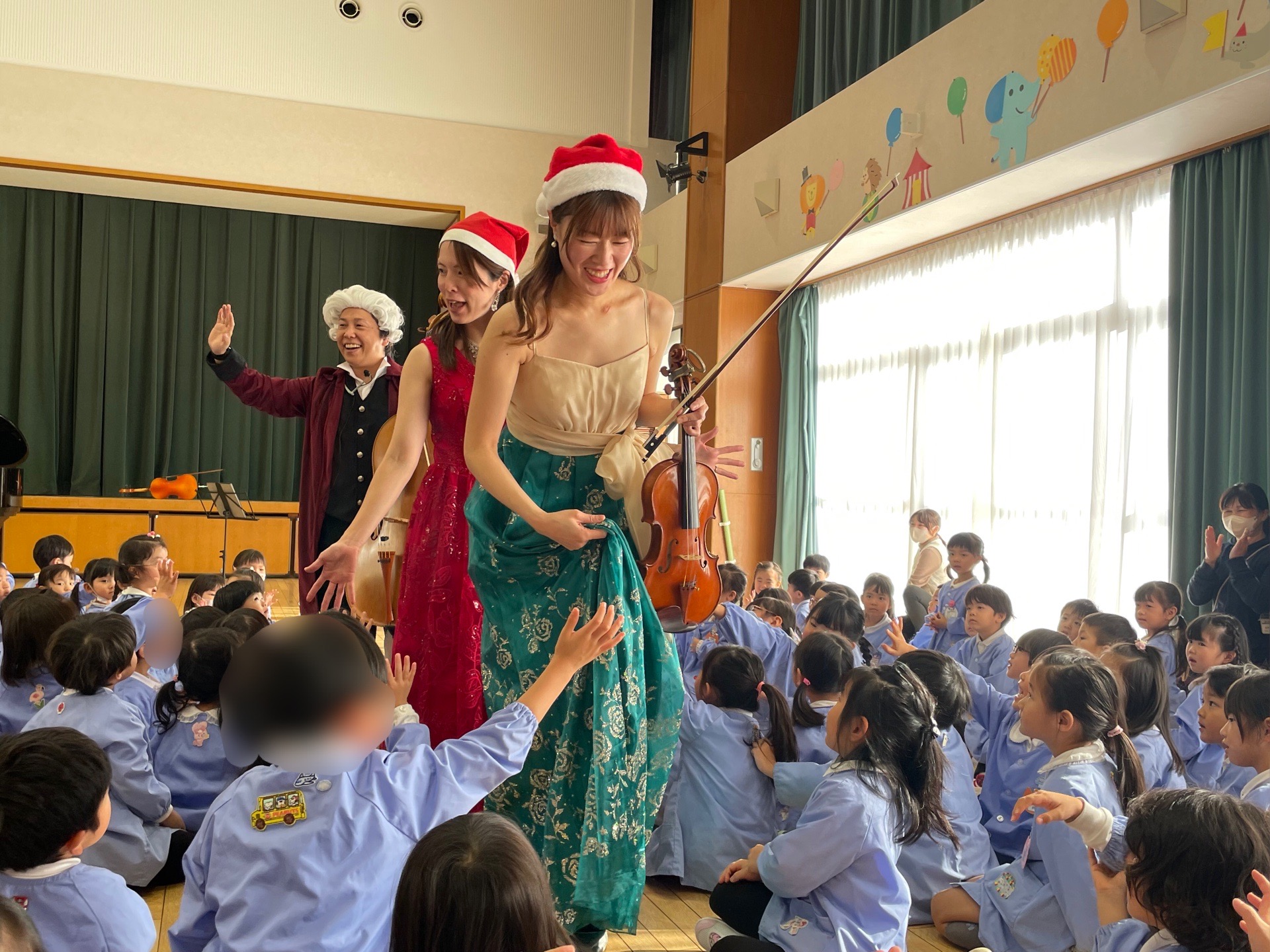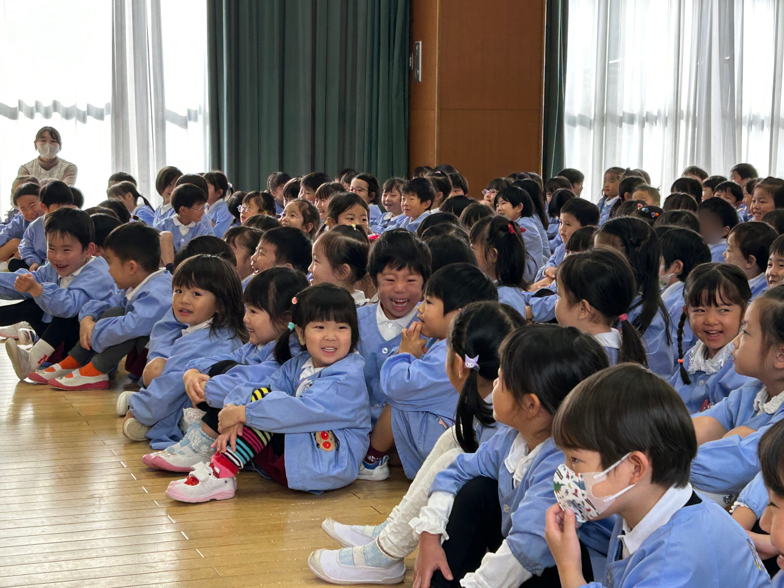 みんなで合奏もしたよ!12月生まれのお友だちは鈴、年長さんはカスタネット、他のみんなは手拍子で参加したんだー!「赤鼻のトナカイ」と「勇気100%」を合奏したよ!