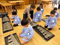 周りの音につられちゃう・・木琴は2つの音を同時に叩くんだって・・(*_*; 難しいなぁ・・・