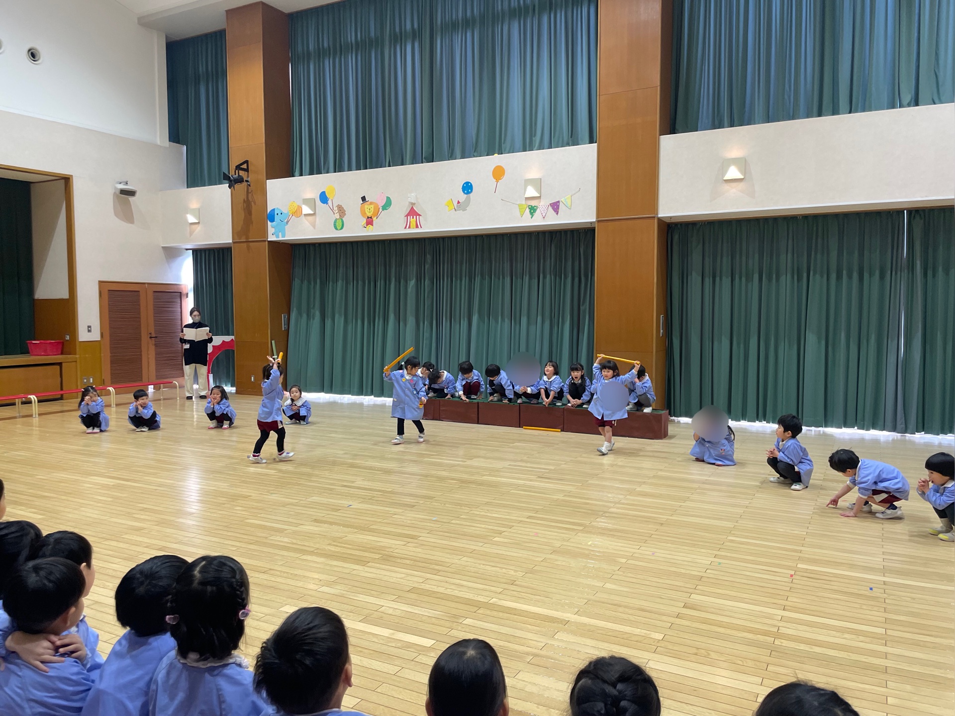 お歌もセリフも大きな声で言えるように、劇の練習を頑張ってるよ〜!
