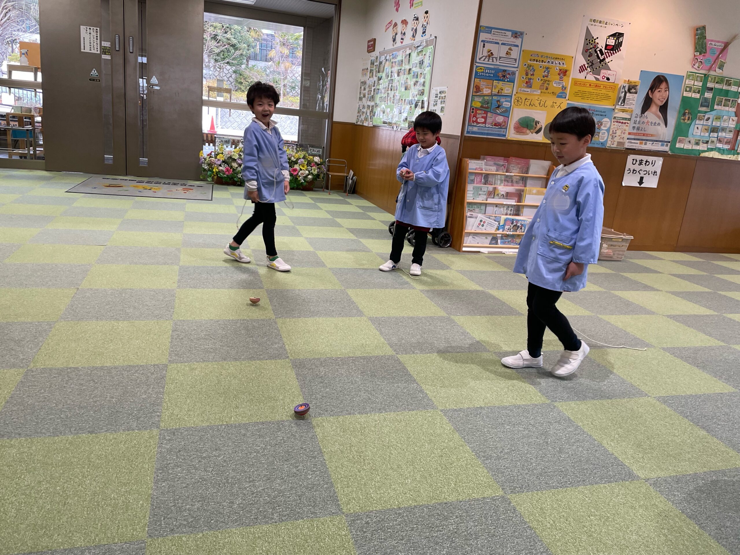 お昼を食べた後は、こままわしも大人気!上手に回せるお友だちのやり方を見よう見まねで頑張って練習中( ̄▽ ̄)