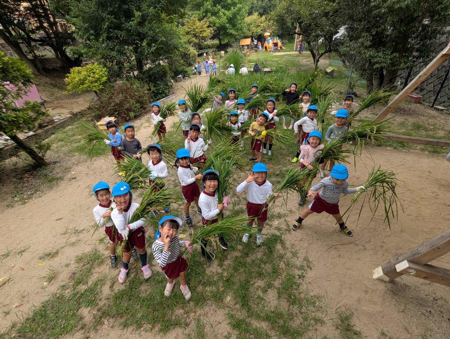 稲をしっかり持って、下の方をチョキチョキ!✂✂