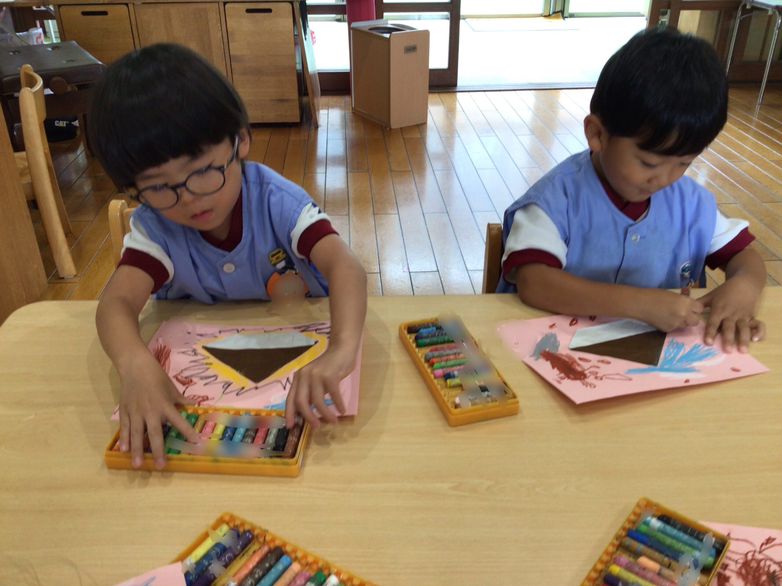 ペンを使って描いてみたり・・・絵の具やクレパスで塗ったり♡