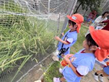 かいじゅう公園では、稲穂の成長を眺めている子も。