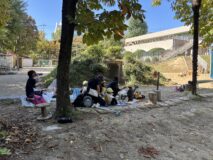 さぁ、どれであそぶ?となった途端、長い滑り台に一目散!!何度も何度も滑り、その後は、二段砂場やかいじゅう公園のひばりの家を使って遊んだり、どんぐりを拾ったり、とにかく大忙し!最後は、木陰でおにぎりを(^^♪
