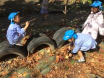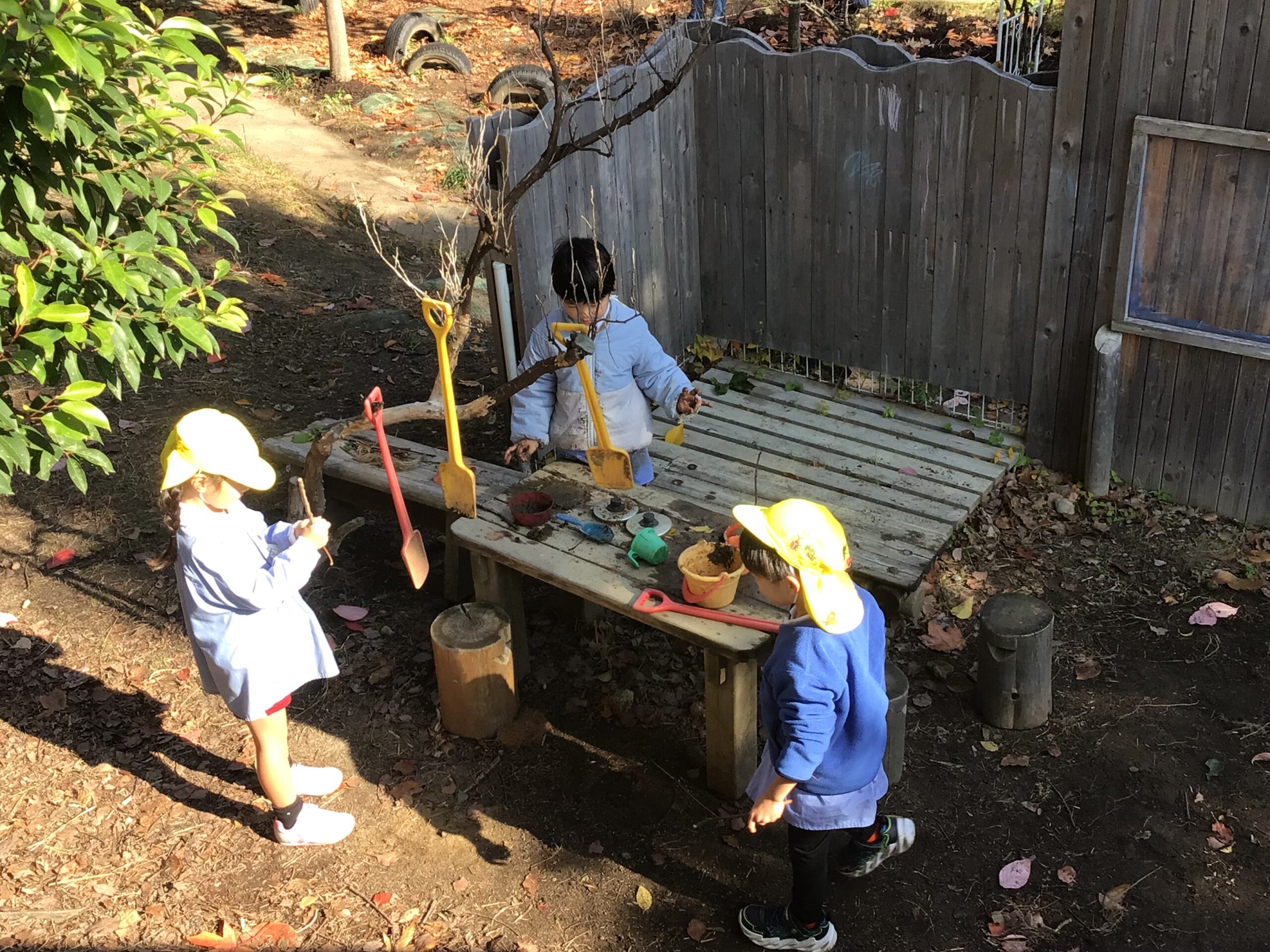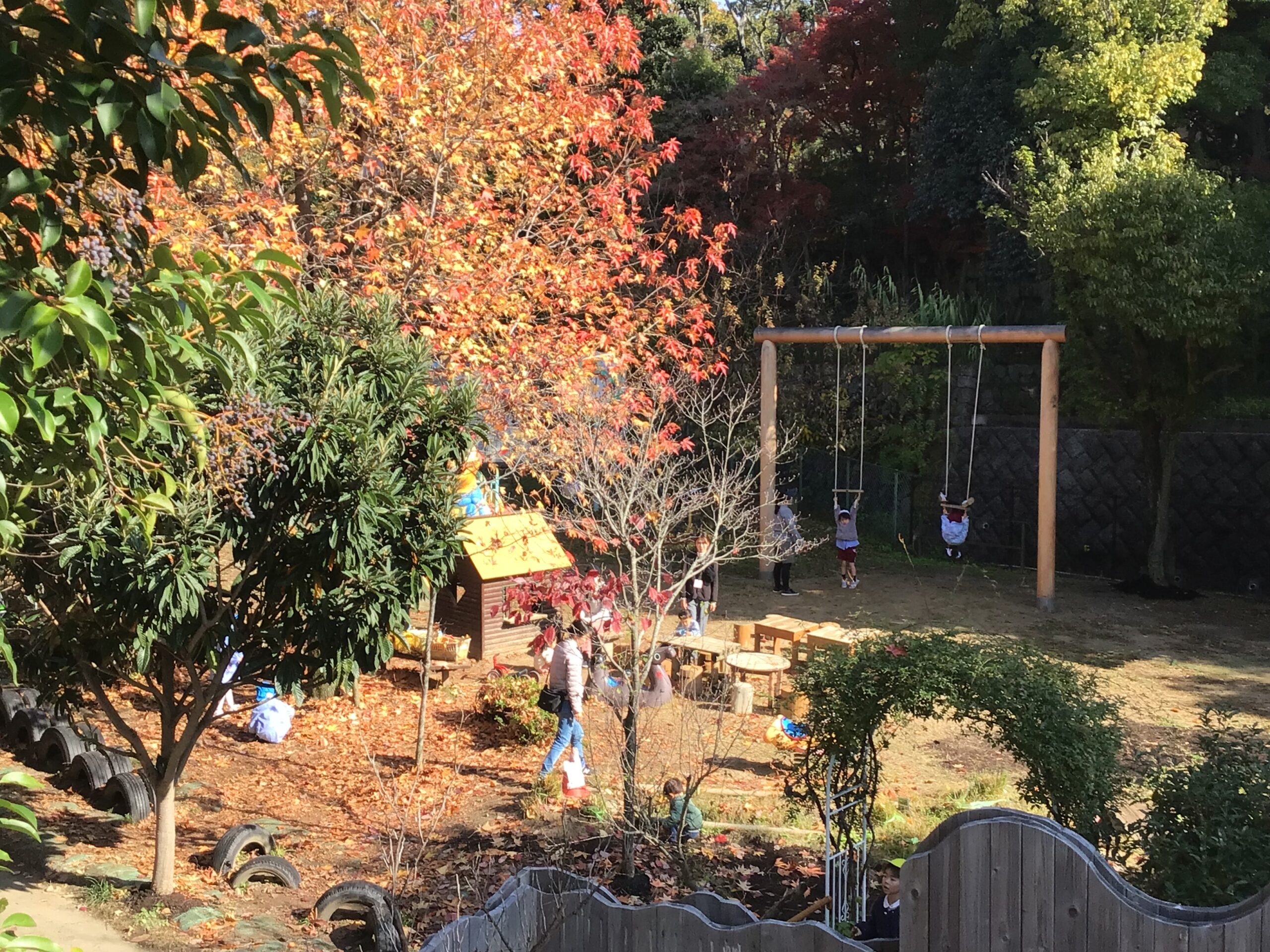 秋もすっかり深まって、園庭はまさに紅葉狩りの季節です。