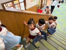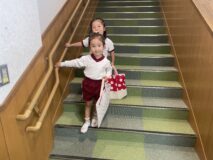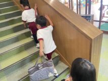 朝の用意が終わったらしゅっぱーつ!階段上って行くよ~(*^_^*)