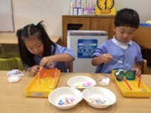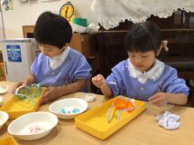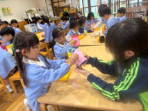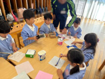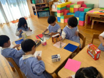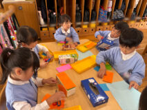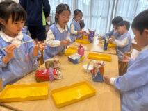 お店屋さんごっこの品物をみんなで相談して決めたよ。( ´ ▽ ` )
