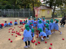 今日は、年少組のみんなでかけっこと玉入れをしたよ!