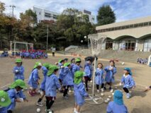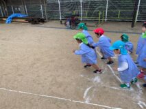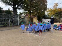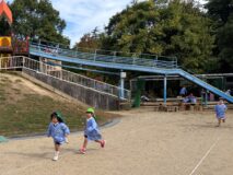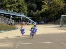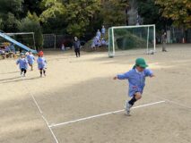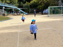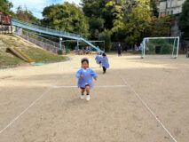 かけっこは、年中組さんが運動会でしていた「半周かけっこ!」