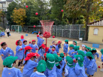 次は「玉入れ!」赤と白のチームに分かれたんだよ。玉をかごに入れるんだ~!「それっ!」「あれ~、なかなか入らないよ!それっ!」「入った\(^o^)/」どっちのチームもいっぱい入ったね☆