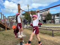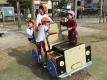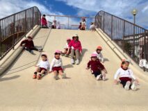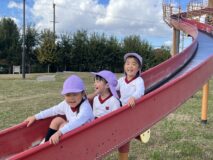 幼稚園より長いローラー滑り台や、みんなで滑れる幅の広い広い滑り台があったよ!友だちと一緒に滑って楽しかったね!
