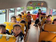 バスに乗って「ビオパーク」に出発!ガードマンさん、行ってきまーす!