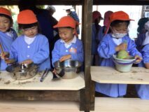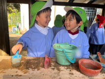 本物のお鍋やフライパン、お玉もあってお料理を作るお友達で大人気だったよ。