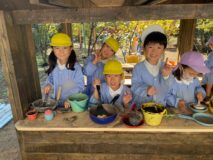秋のどんぐりや赤や黄色の落ち葉もお料理に入れて楽しかったね!