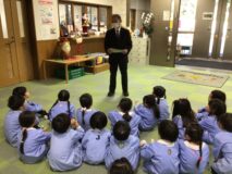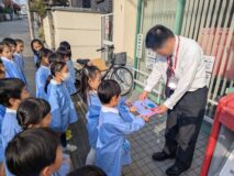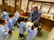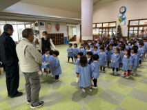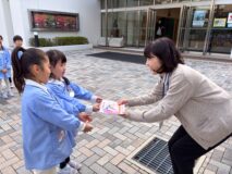 いつもみんなのために、幼稚園をきれいにしてくださったり、給食を運んでくださったり、いろんなところで力を貸してくださる方々にお礼を伝えたんだよ!