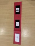 長く伸びるカードには、絵が描いてあったんだ。「四角に、?マーク」