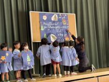 そして舞台の上には、たくさんの絵の大きな紙が届いていていたんだ!