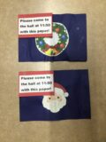 赤い小さなカードには英語で「このカードを持って、11:50にホールに集まって!」と書いていたんだ^ ^