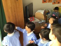 これは何のマーク?誰から?ひょっとしてサンタさん?!この部屋に四角の物があるのかな?みんな大騒ぎ(^○^)部屋をあちこち探したよ