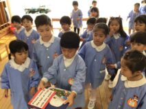 「あっ、このカードの絵とおんなじ!」「合わせてみたらいいんじゃない?」10クラスのカードを合わせることになったよ