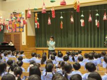 「初めてのクリスマスの日は、こんなことがあったんだよ。」というペープサートを見たよ。クリスマスはイエス(=キリスト)様のお誕生日で、それをお祝いしてケーキを食べたり、プレゼントをもらったりするようになったんだね。