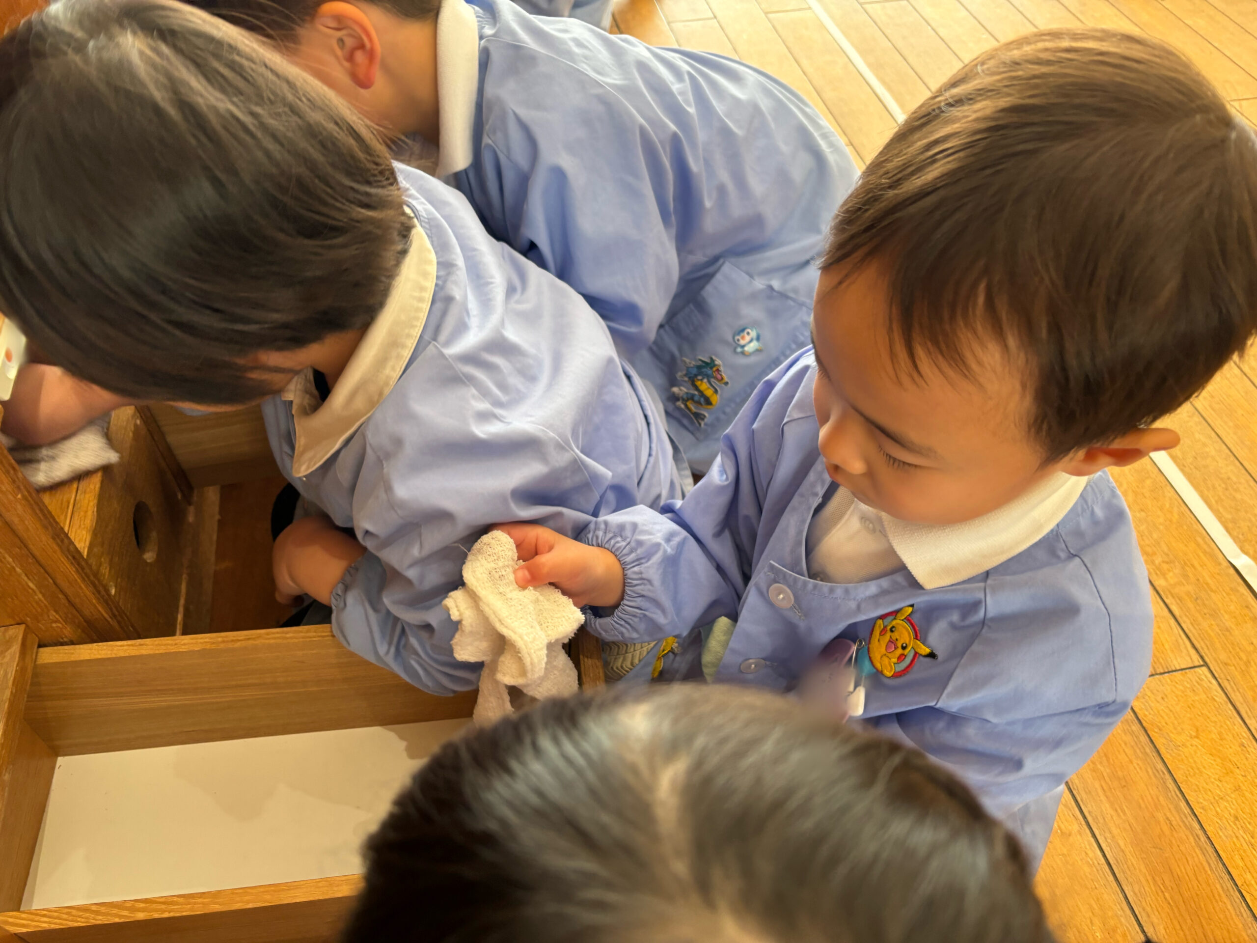 引き出し、お道具箱入れ、ロッカーは角っこまで拭いたよ〜!