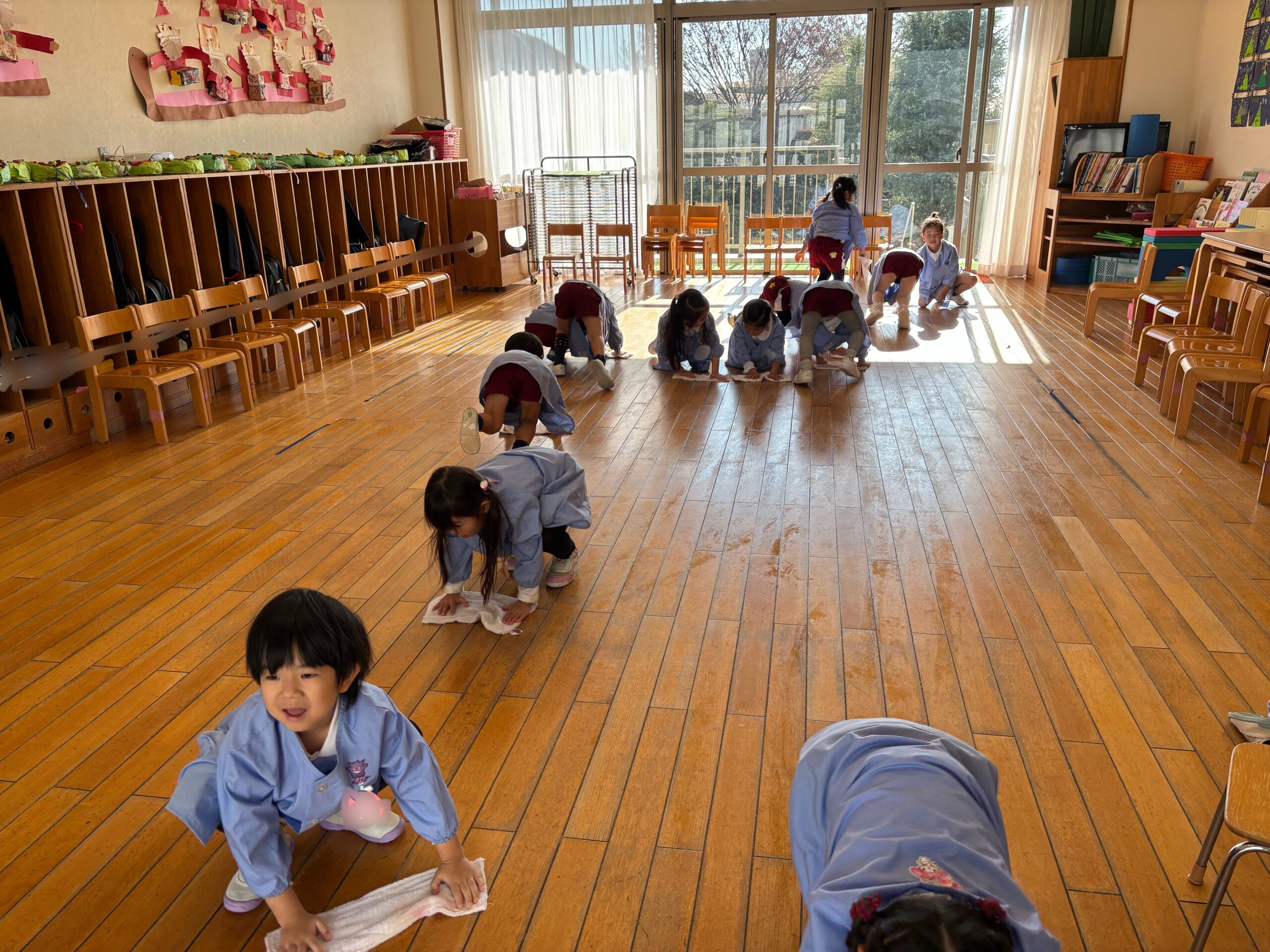 床は、隅っこのホコリも拭き取って、長ーい雑巾掛けにも挑戦!