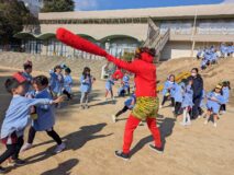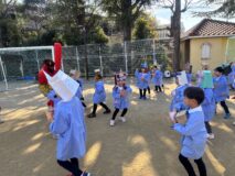 ホールの鬼をやっつけたら、次は園庭に鬼が!
