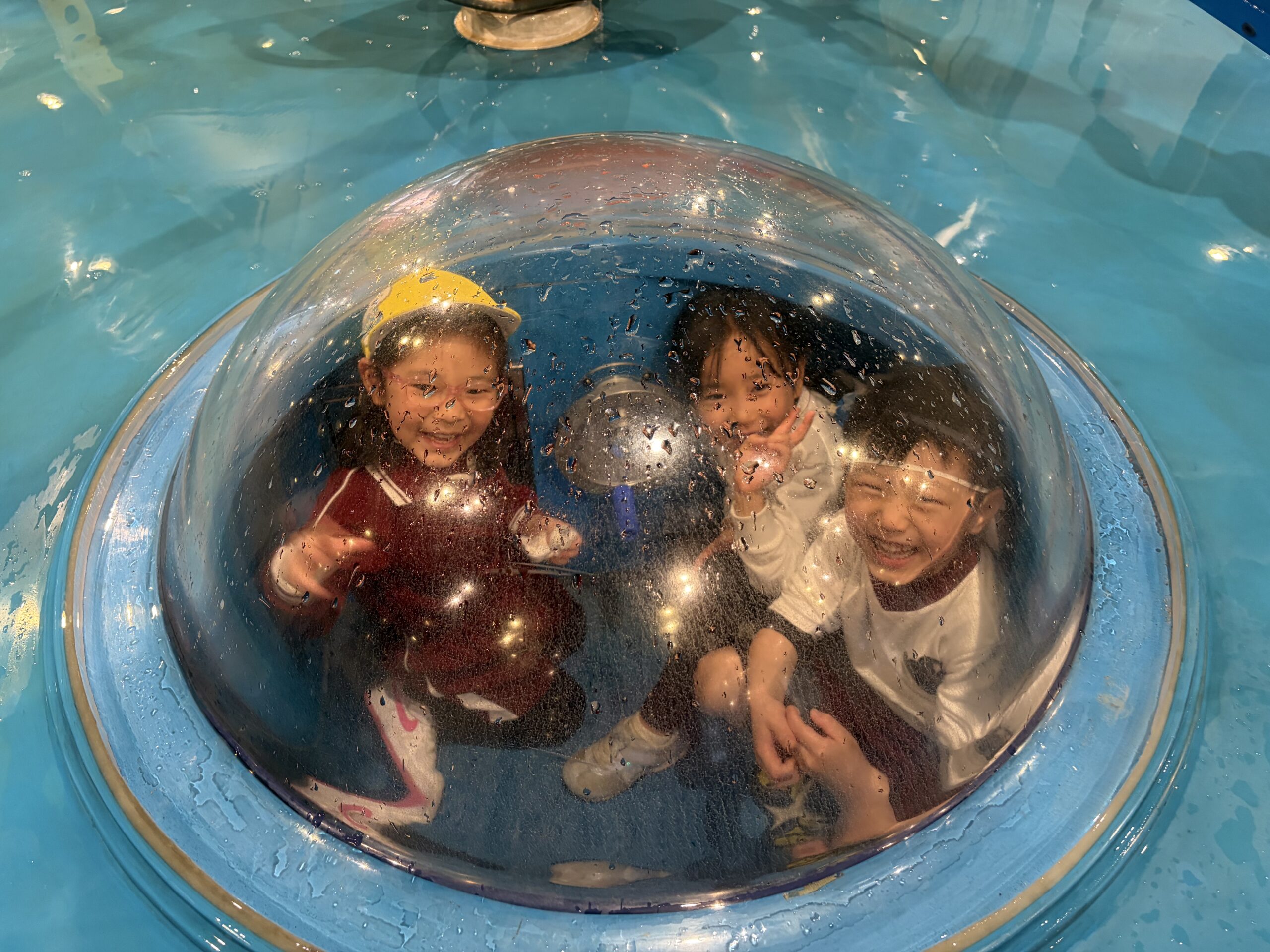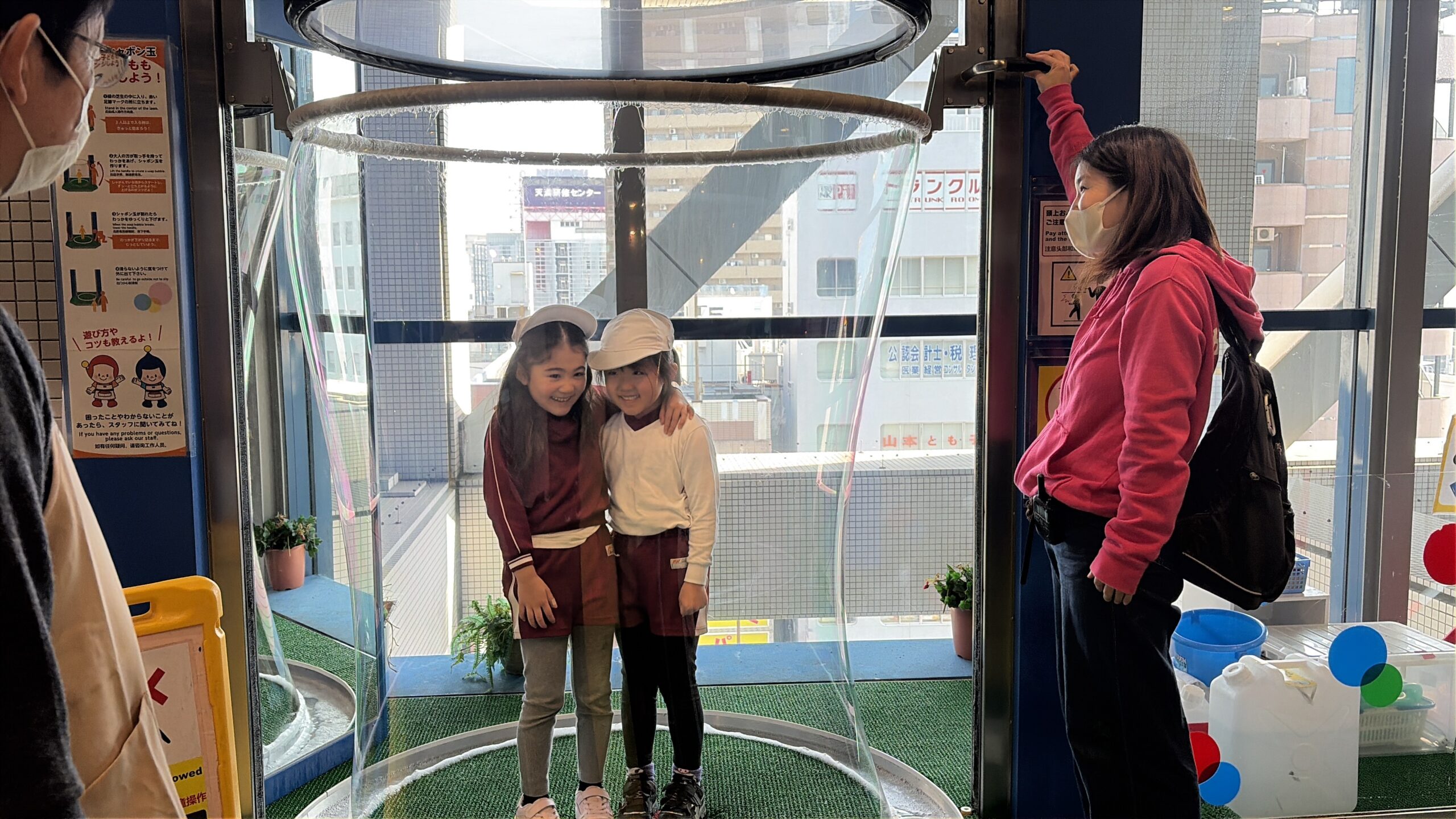 ここは、シャボン玉の中に入れるんだって♡割れないかドキドキ・・・(≧▽≦)