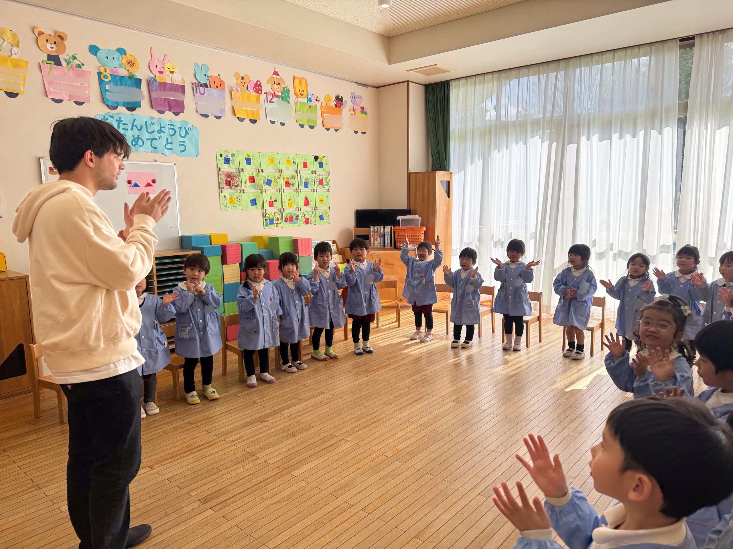 英語では自己紹介をしたり、歌を歌ったりいつも楽しいんだ〜!