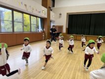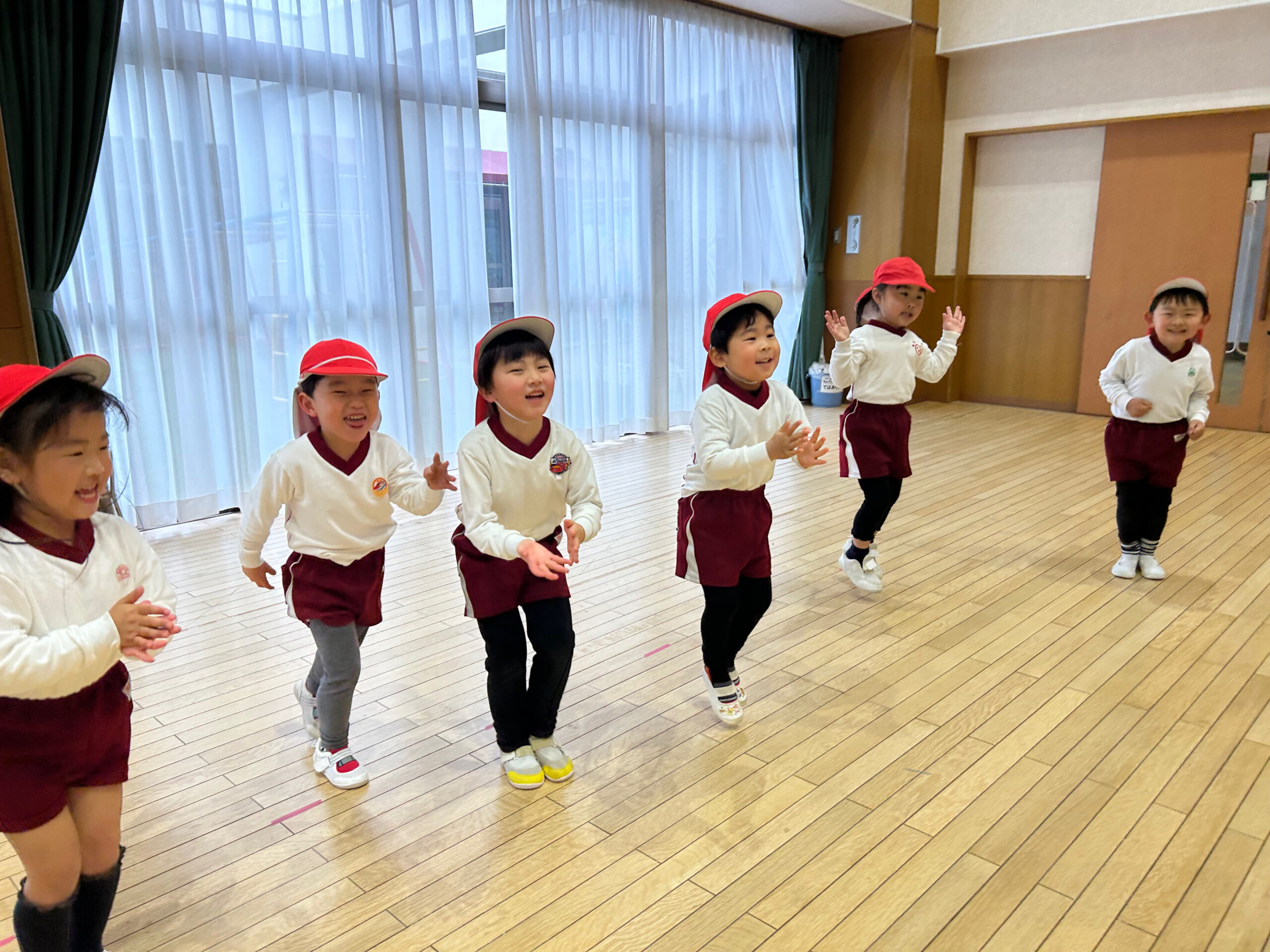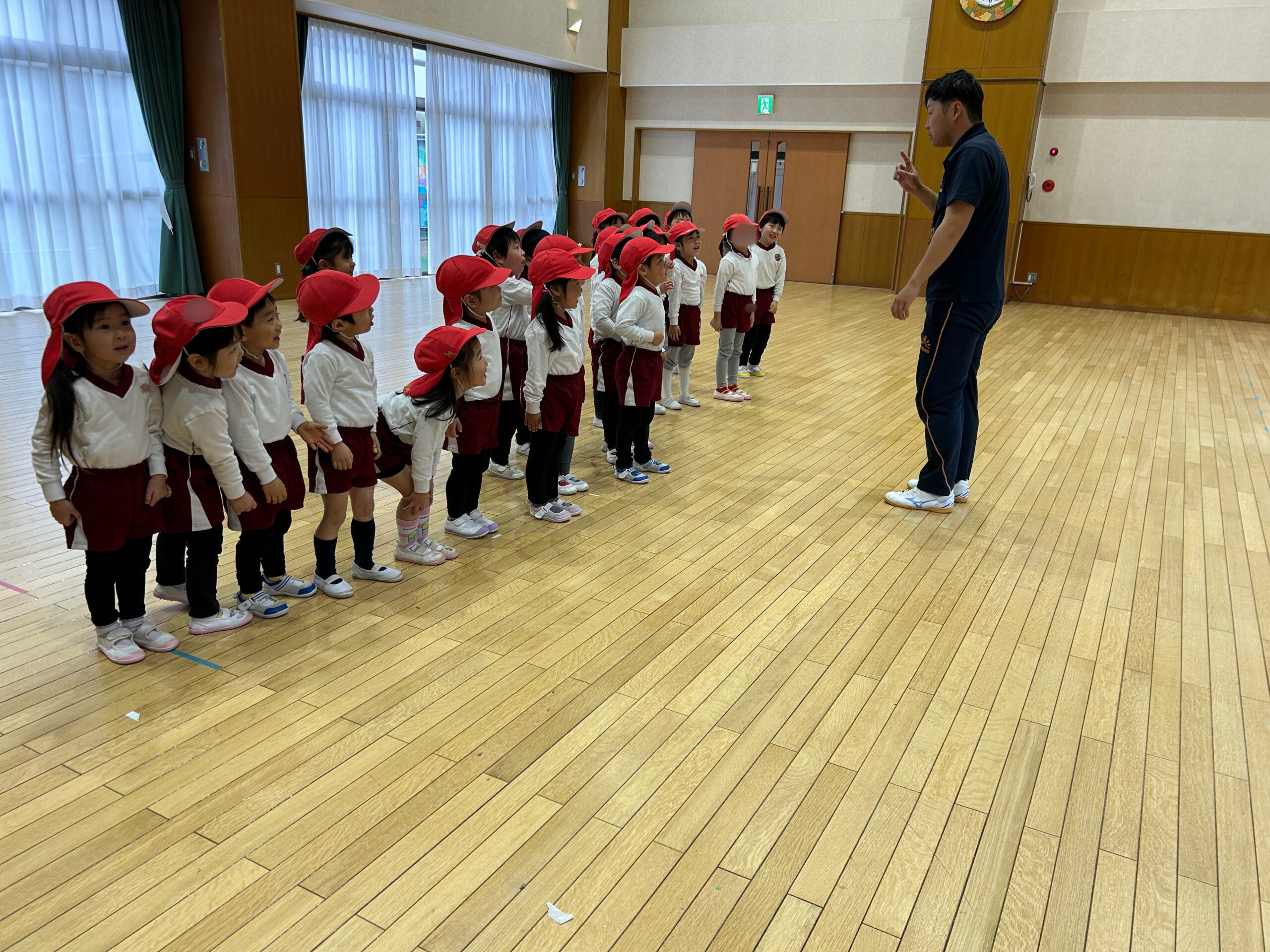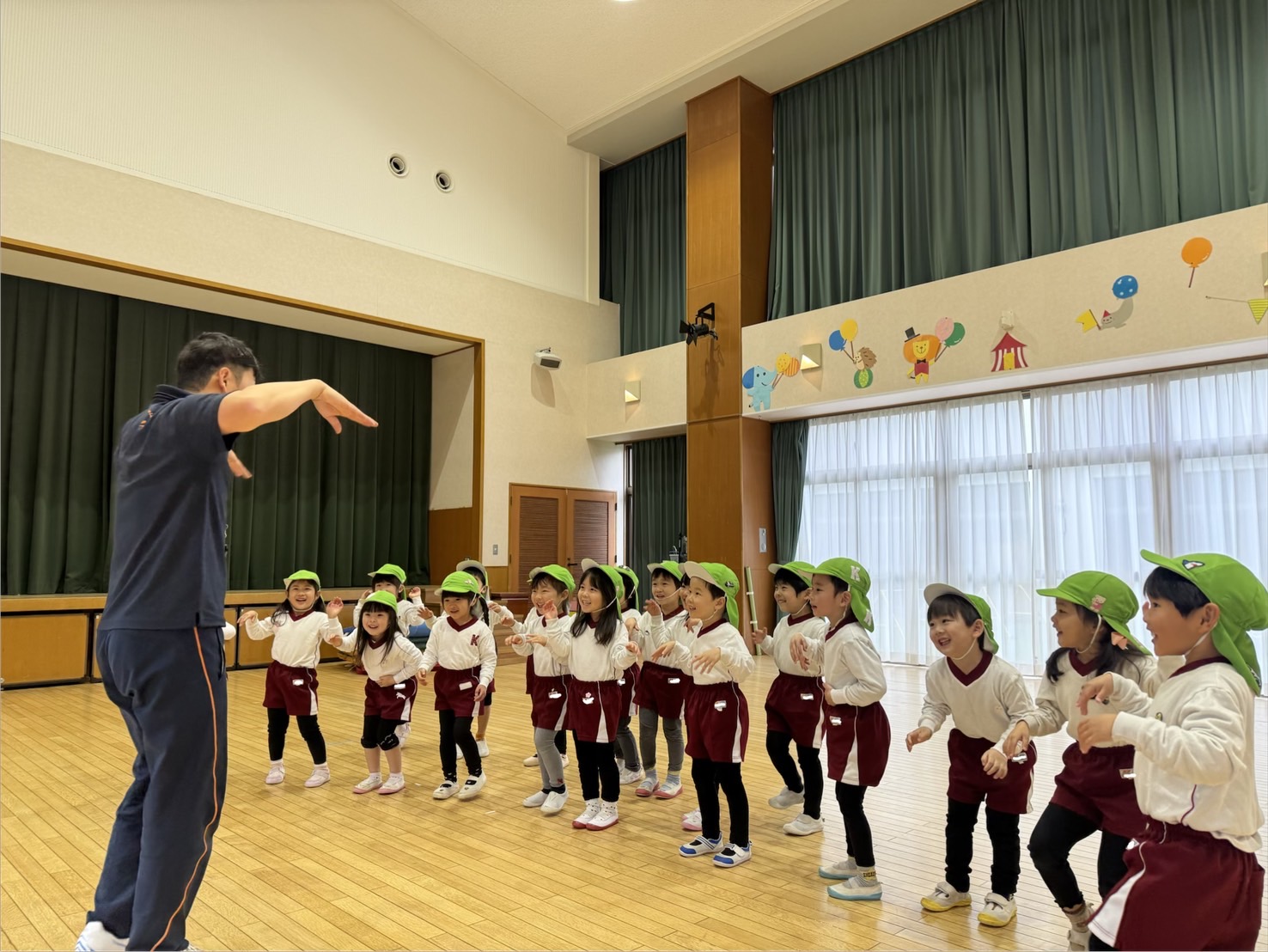 今日は体育の先生が来てくれて、みんなで体をいっぱい動かしたよ(^_-)-☆