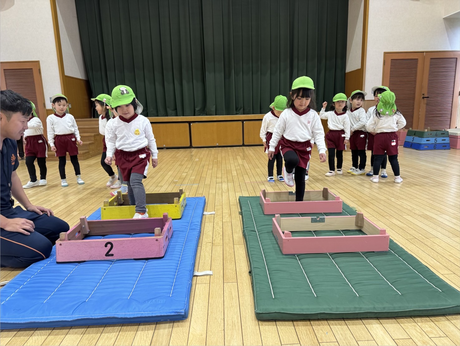 卵、おたまじゃくし、カエル、ジャンプ!の運動もしたよ。高く飛べたよ~(*^^)v