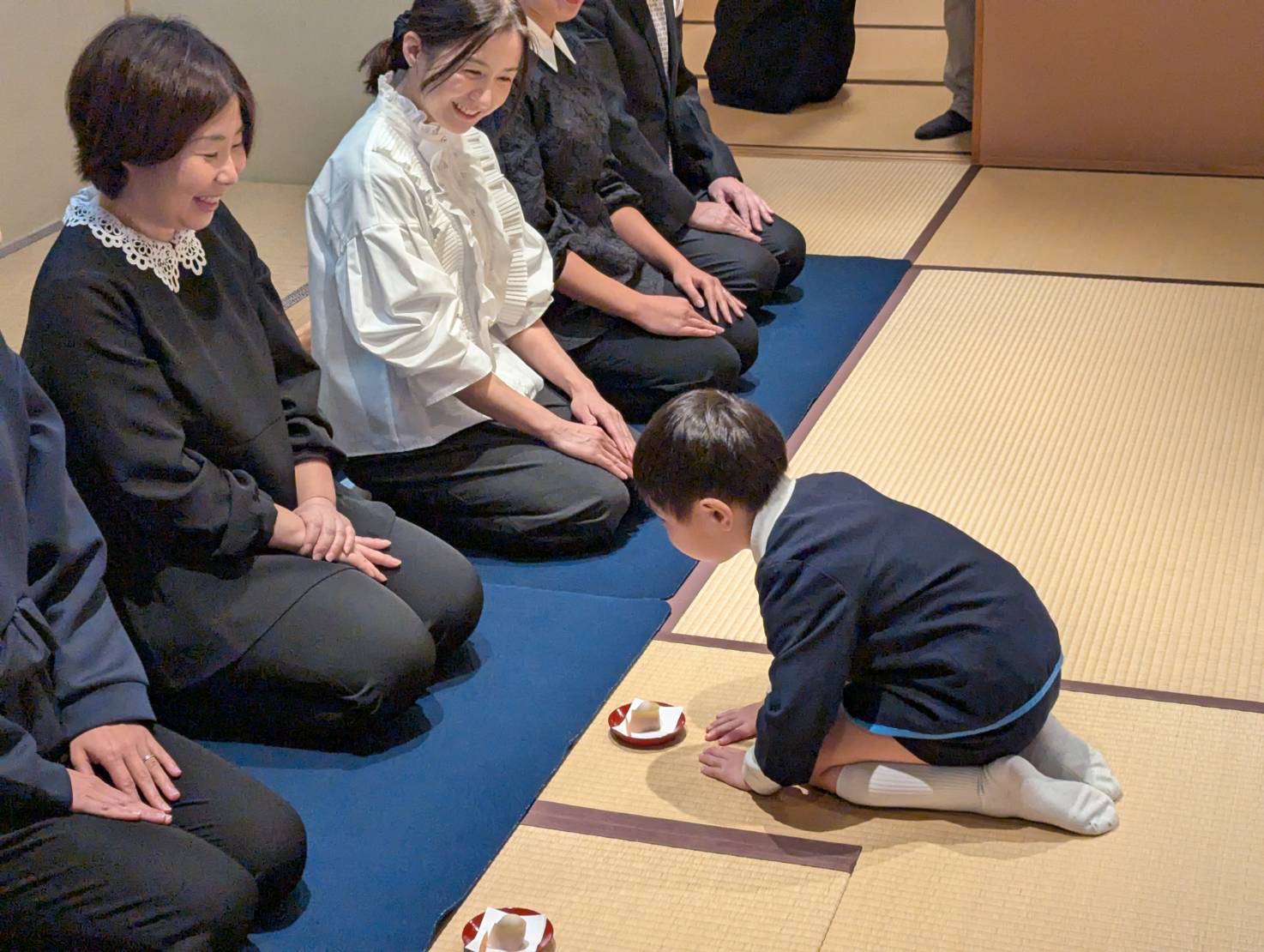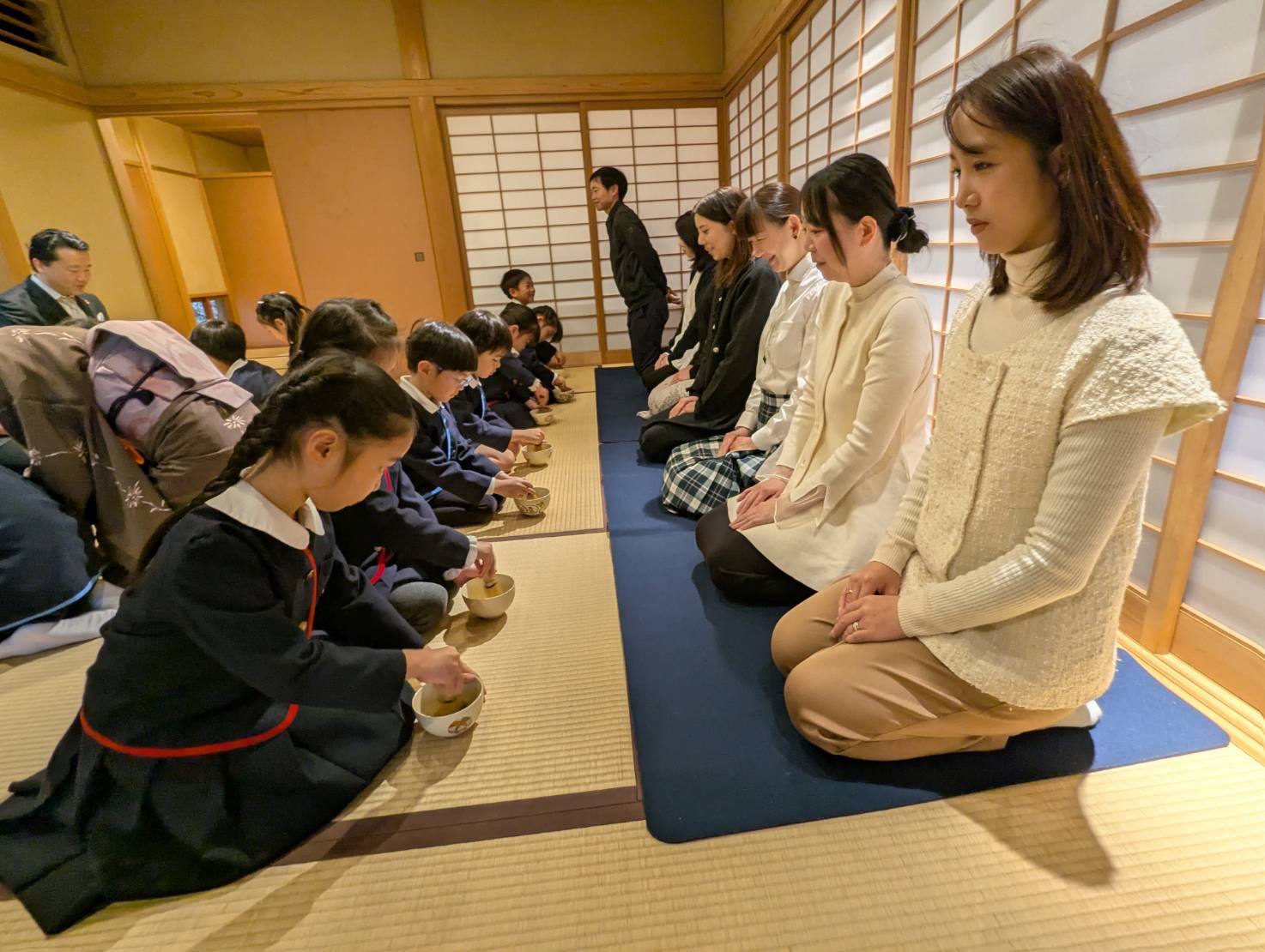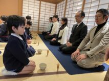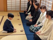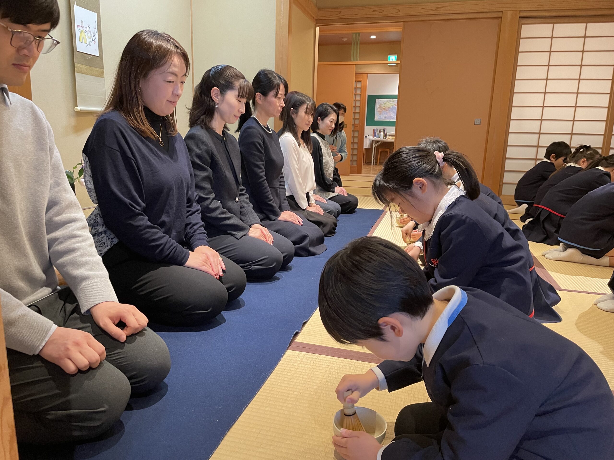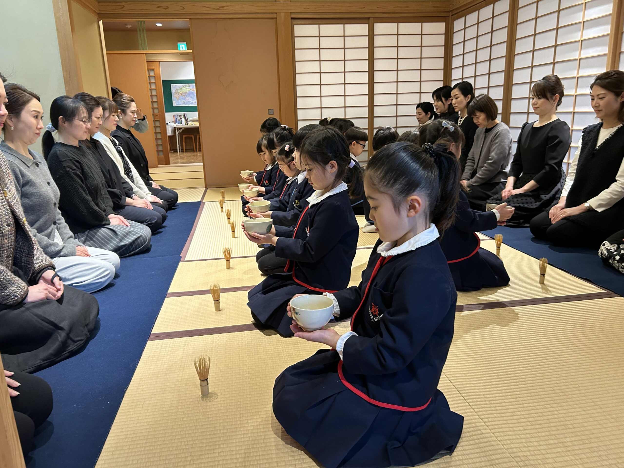 お家の人が見守る中、みんなは心を込めてお茶を点てたね♡
