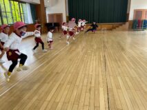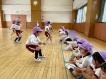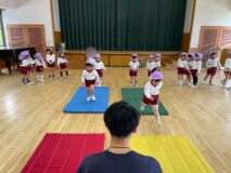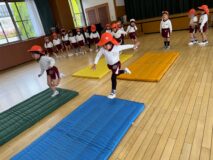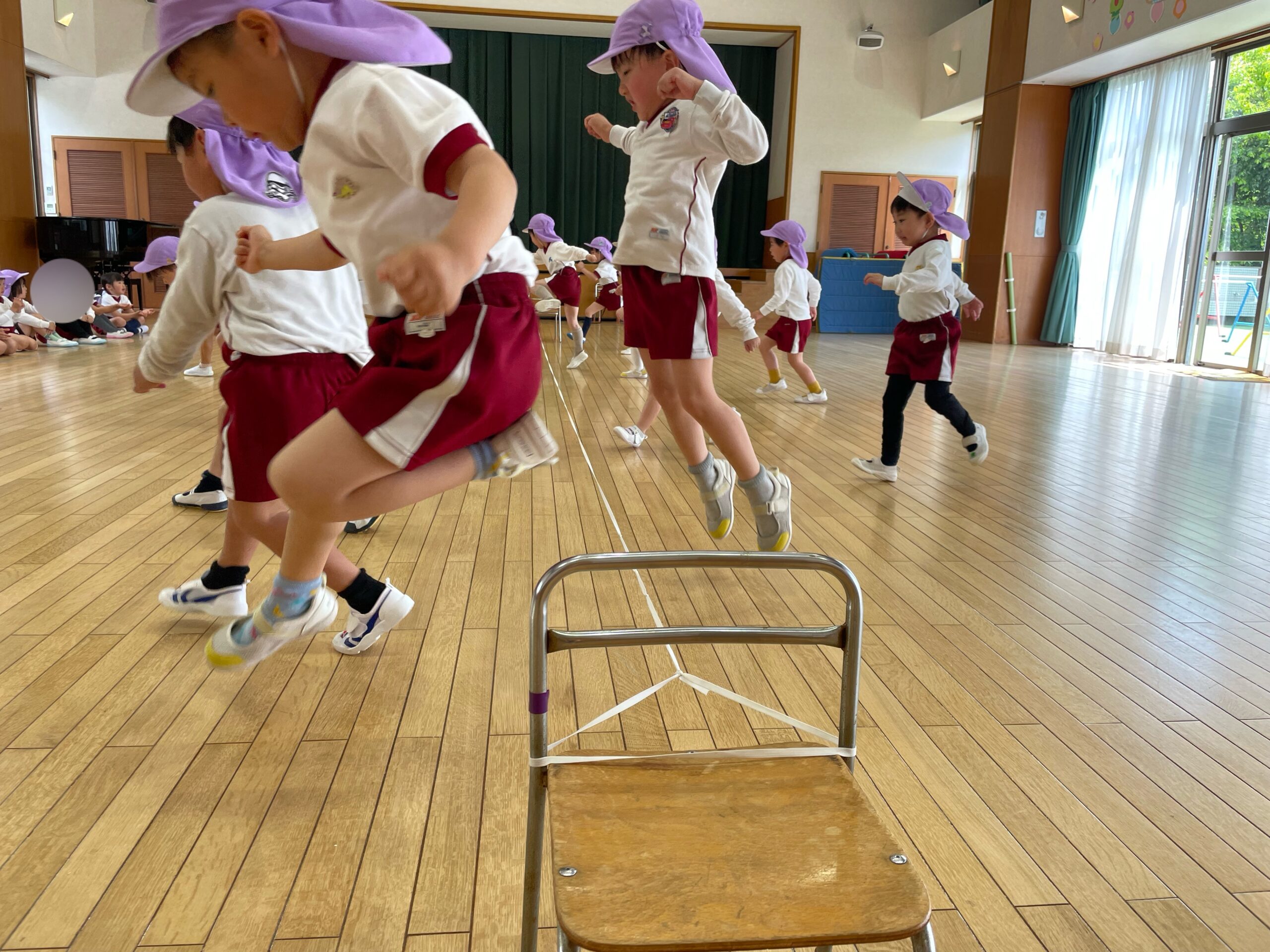 お友だちのところまでお買い物!中野先生が5を数えるまでに行かなくちゃ!その次はゴム線で通せんぼ!ジャンプしてお買い物しに行くよ~!