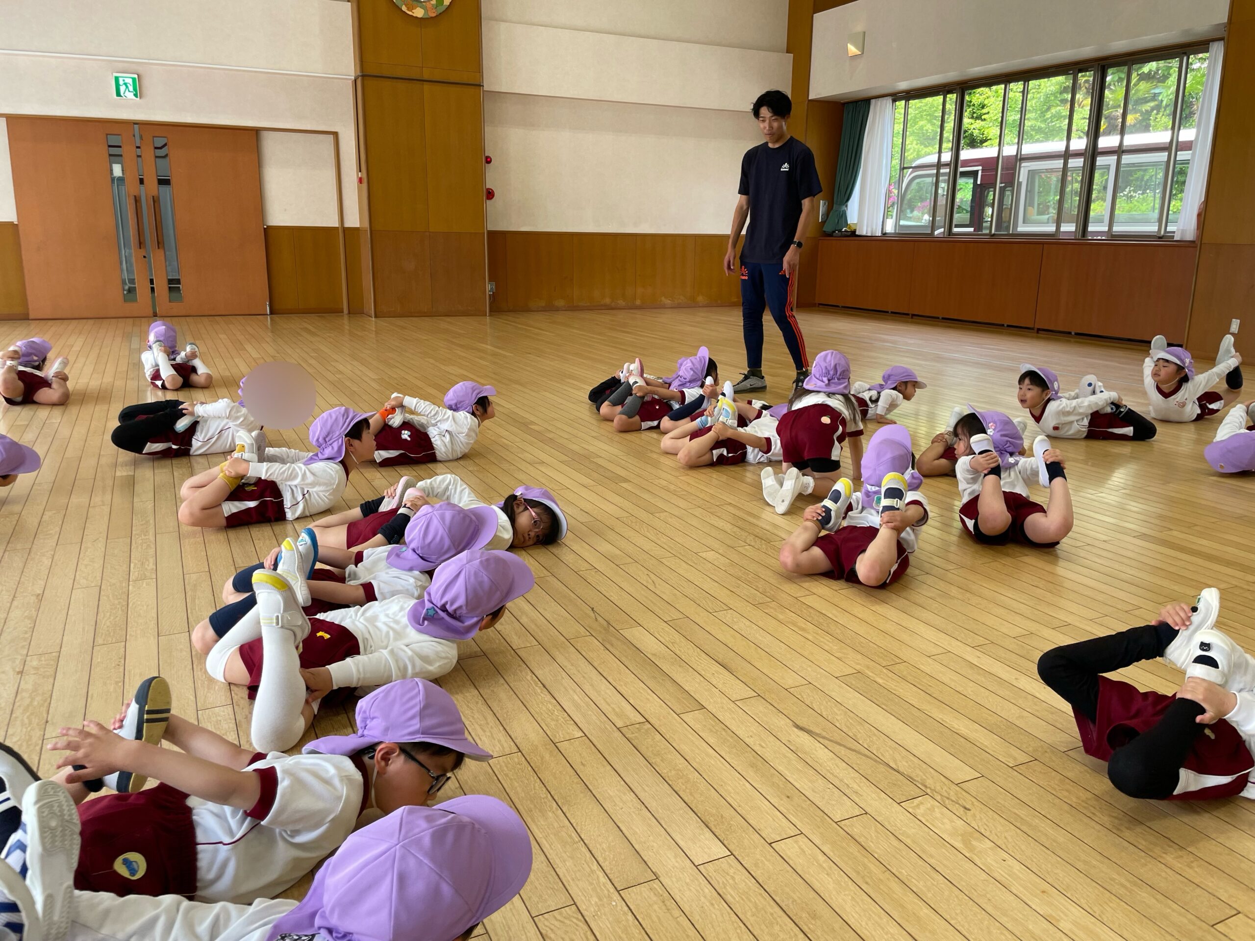 今日はホールで中野先生と一緒に、いっぱい体を動かすぞ~!(≧▽≦)